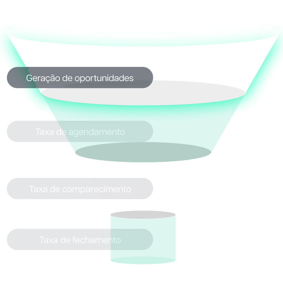 A gente ajusta para gerar oportunidades qualificadas (perfil, intenção e região) e mede isso com dados.